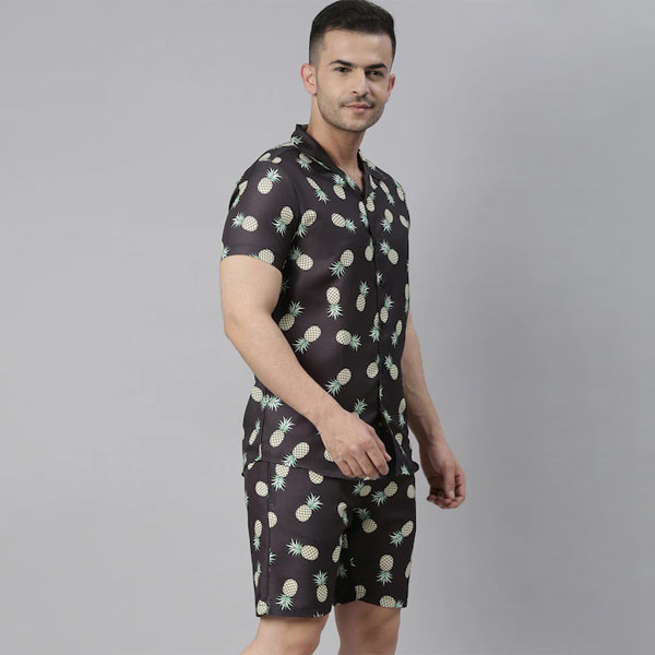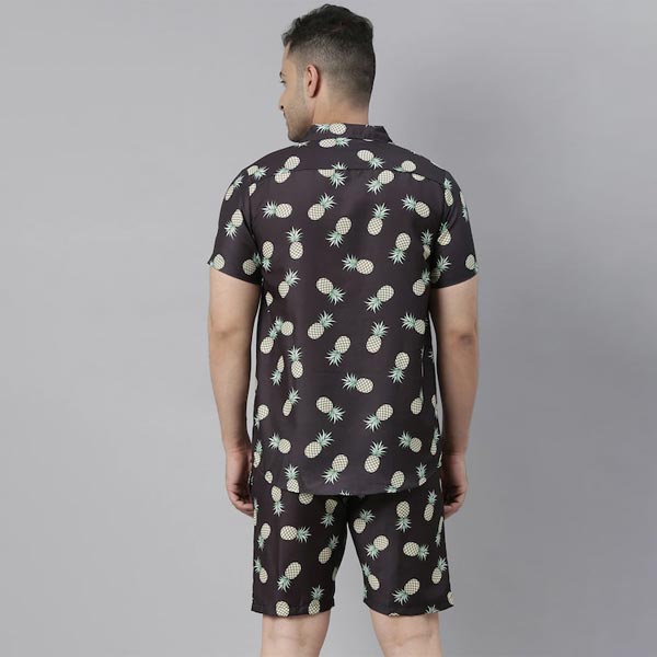 Men Black & Cream-Coloured Printed Night suit