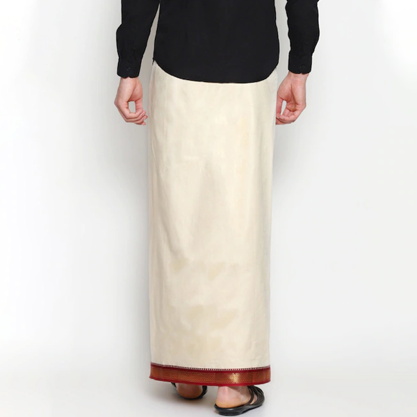 Pack of 2 cream-coloured solid readymade dhoti, each has black border and 1 pocket