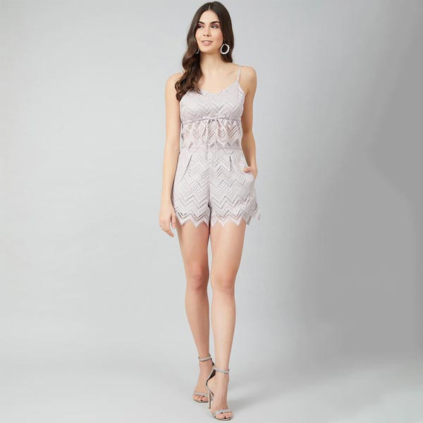 Women Grey Lace Empire Top